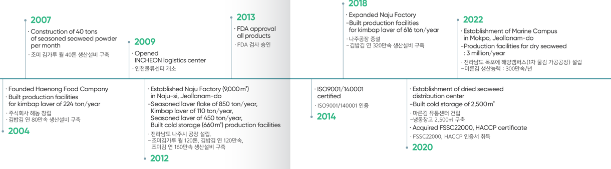 Haenong is a professional seaweed company that has only walked one path for 20 years and has an annual production capacity of 3 million dried laver, "it is a good product only when consumers are satisfied," we are constantly striving to supply products with excellent quality and reasonable prices that consumers can be satisfied with. We promise to be a company that always makes reliable food with sincerity.